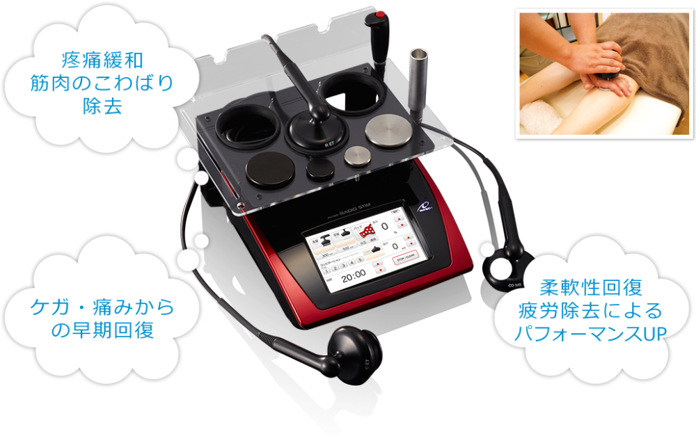 南勢はり・きゅう接骨院では、オリンピックの公式トレーナーチームをはじめ、数多くのプロアスリートに採用されている高周波温熱機器「ラジオスティム」を導入しています。